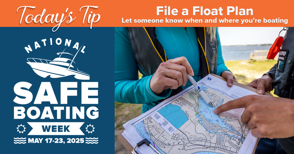 File a float plan – let someone know when and where you’re boating. #safeboating #nationalsafeboatingweek